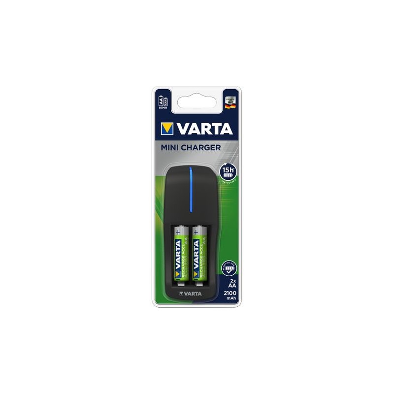 Incarcator Varta Mini Charger 57646, cu 2 acumulatori, AA, 2100 mAh